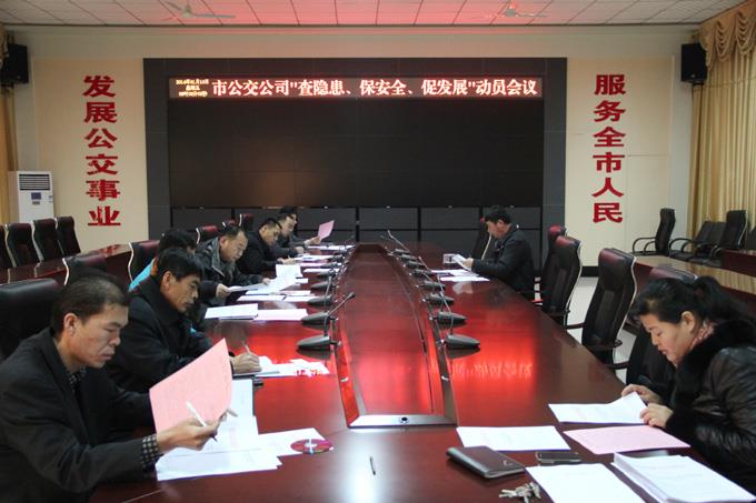 1月10日上午,市公交公司召開了各基層工會(huì)主席參加的動(dòng)員會(huì),會(huì)議部署了“查隱患”活動(dòng)的具體實(shí)施方案,傳達(dá)了市交通運(yùn)輸局工會(huì)主席針對(duì)本次活動(dòng)的講話精神,公司工會(huì)主席和安保科長(zhǎng)對(duì)活動(dòng)進(jìn)行了具體強(qiáng)調(diào),并作了具體分工。